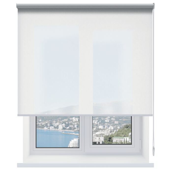 Рулонные шторы в оконный проем – это цельное полотнище ткани, которое крепится к стене или потолку над окном и при подъеме скручивается в рулон с помощью специального механизма. Рольштора закрывает весь проем окна, позволяет регулировать уровень затемнения и приватности помещения.